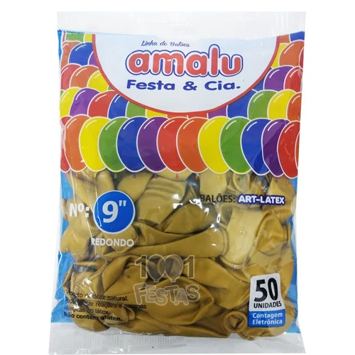 Balão Metalizado Ouro N09 50 Unid. Amalu
