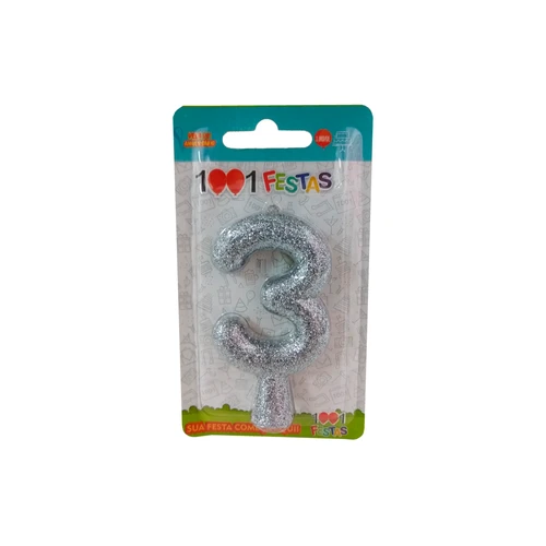 Vela Tubo Glitter 0 Prata 1001 Festas